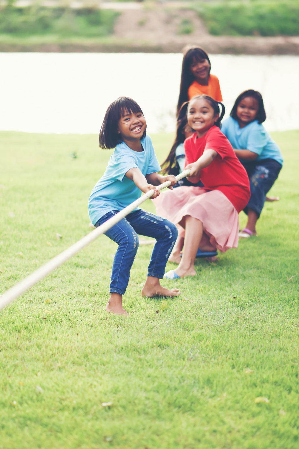 Rope game is a team game where two groups pull on opposite ends of a rope, aiming to drag the other team across a line. It tests strength, teamwork, and coordination.
